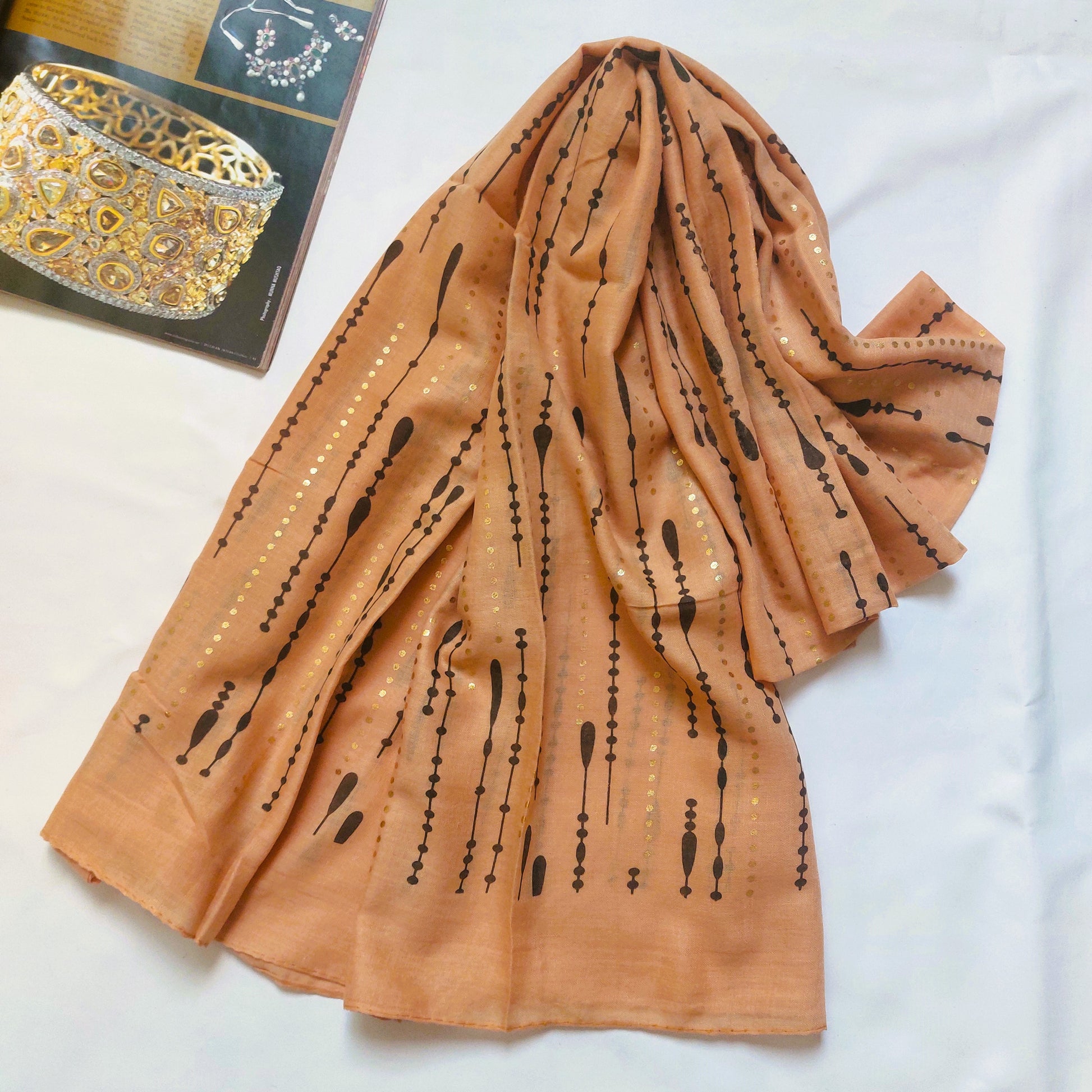 This hijab features delicate, cascading details reminiscent of golden droplets, offering both comfort and style for any occasion.