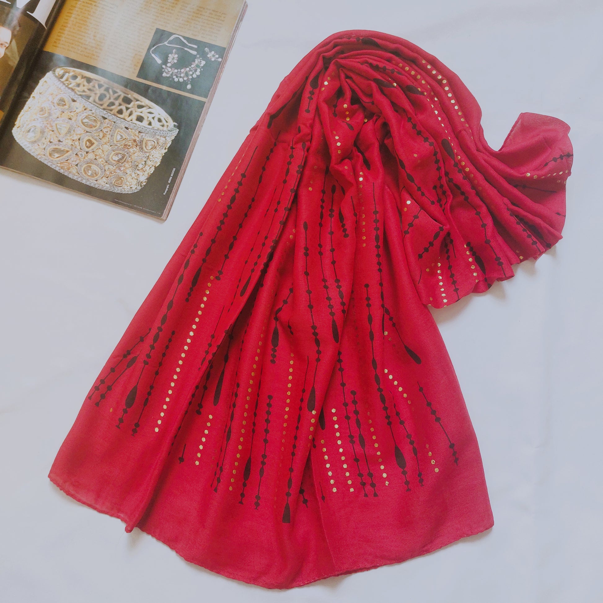 This hijab features delicate, cascading details reminiscent of golden droplets, offering both comfort and style for any occasion.