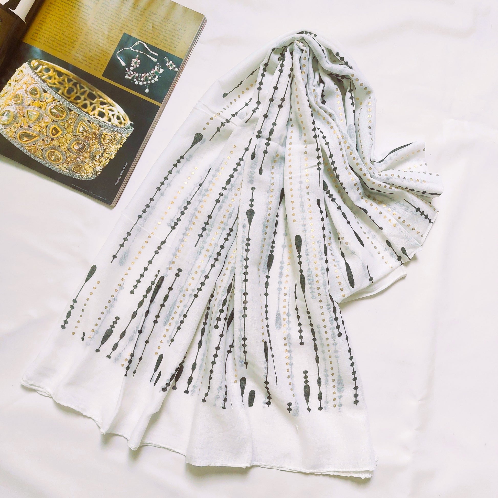 This hijab features delicate, cascading details reminiscent of golden droplets, offering both comfort and style for any occasion.